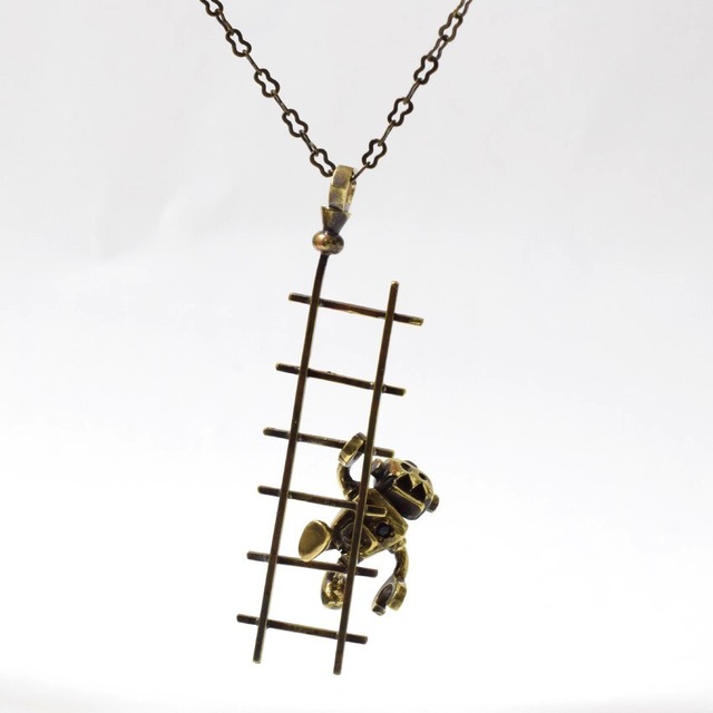 意気揚々と上ったものの ちょっと「タスケテ…」の表情もしているようなRoody 蒸気ロボットRoody(ローディー) 彼は左胸の鉱石で動くロボット。 GEAD の Navigator が此方に持ち込んだスチームパンクなアクセサリーをこれから Visitorとなる貴方へお届け致します。 右手で持っているはしごには固定されていたいので左右に 動かすことができます(取り外しはできません) ペンダント素材:真鍮 (宝石)ガーネット ロボットモチーフサイズ:高さ 約3cm × 幅 約2.5cm モチーフサイズ:高さ 約5.5cm × 幅 約2.5cm チェーン:約45cm(アジャスター 5cm) ●メッキなどの処理は行っておりませんので色変りが起きる可能性があります。 ●モニター環境により、色など見え方が異なる場合があります。 ●お手入れの際はメガネクロスなどの布で優しく拭き取ってください。 ●ティッシュなどでこすると傷がつきやすくなります。